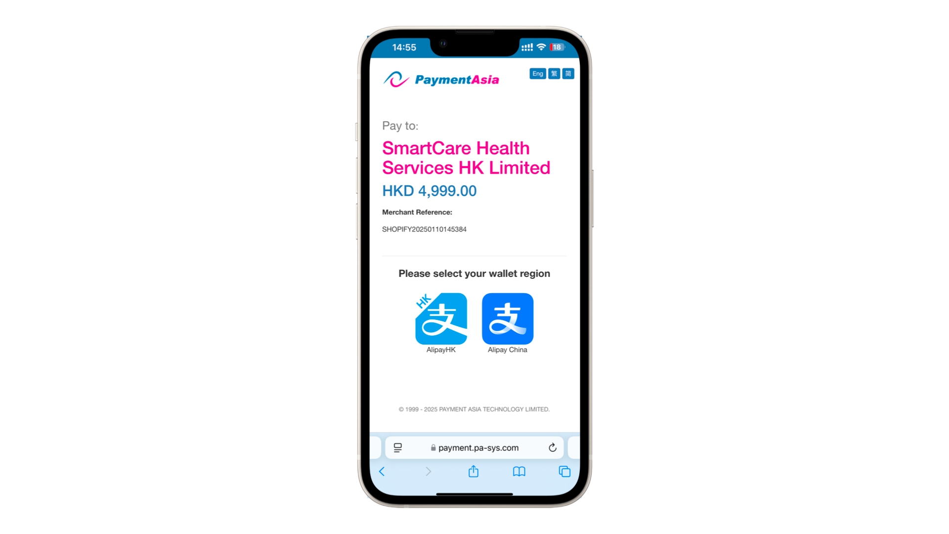 頁面將被轉接至Payment Asia。請根據指示繼續付款程序。